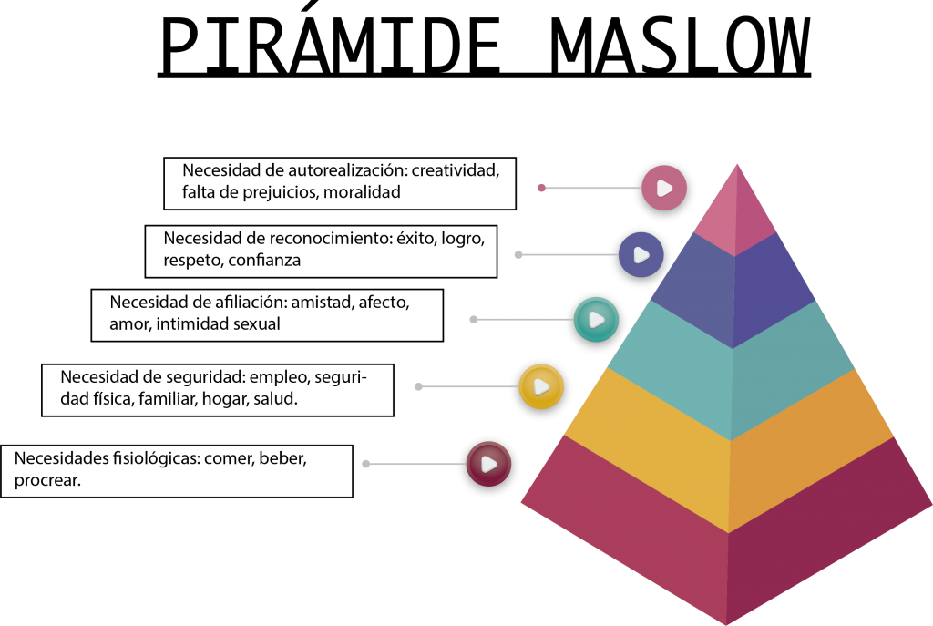 Los seres humanos tenemos una escala de necesidades que debemos cubrir y las propone en forma de pirámide, por lo que si una de las bases no está cubierta, no podremos satisfacer la siguiente.